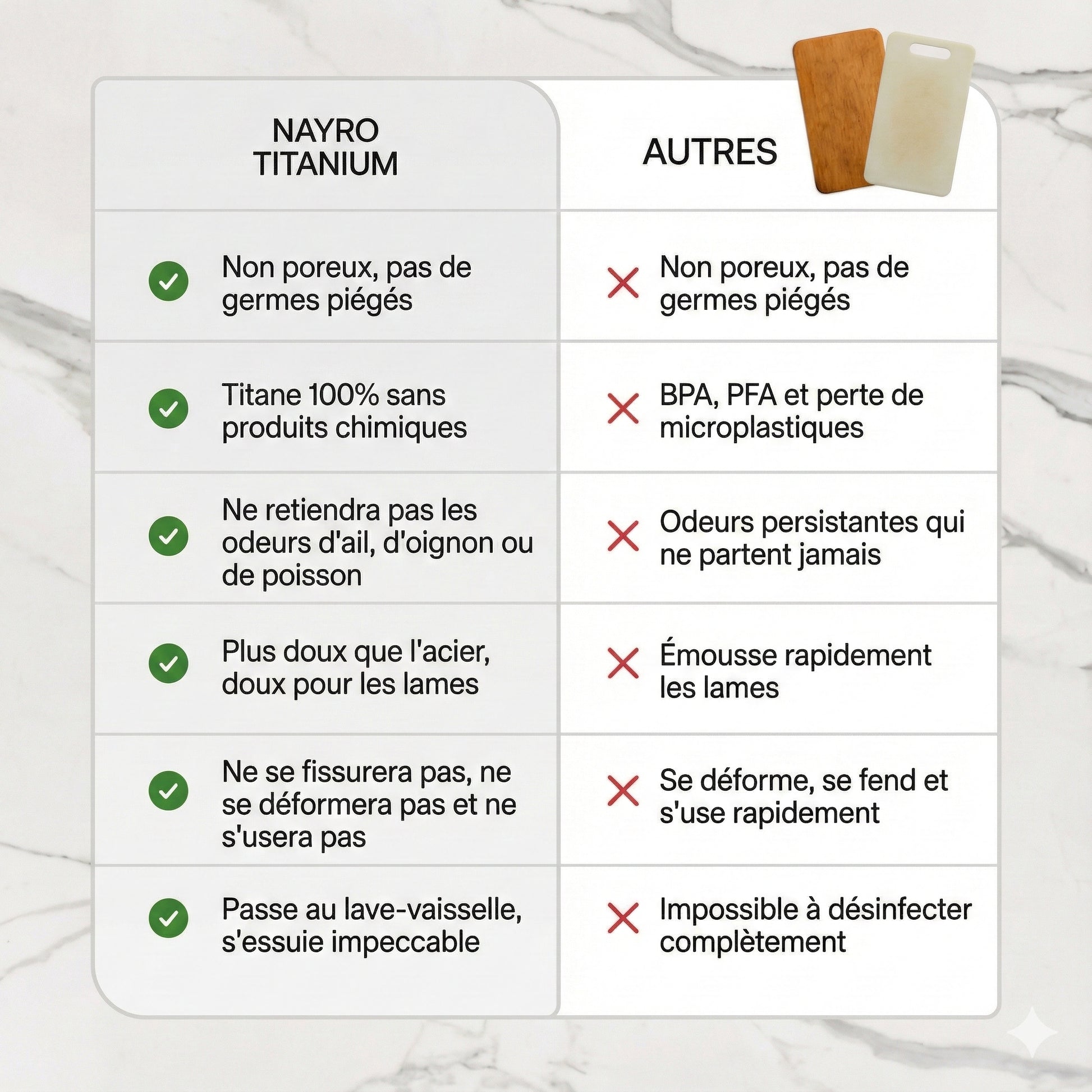 Oui. Le titane est reconnu pour sa résistance exceptionnelle. La planche Nayro est conçue pour traverser les années sans se dégrader, contrairement aux alternatives traditionnelles.
